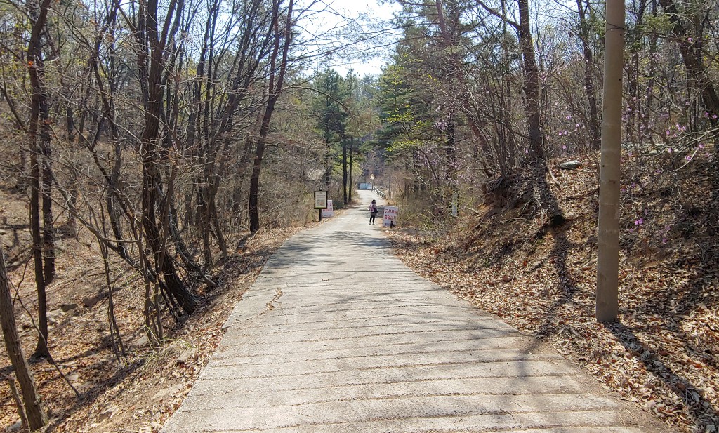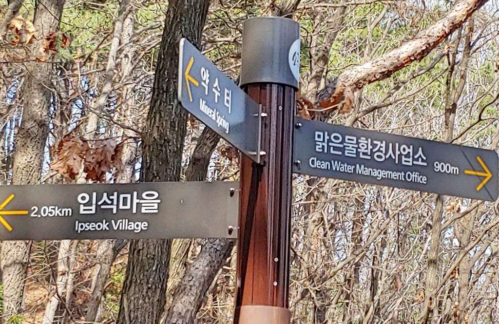 맑은물사업소 뒷편으로 입석마을로 넘어가는 산 입구에 도착 합니다