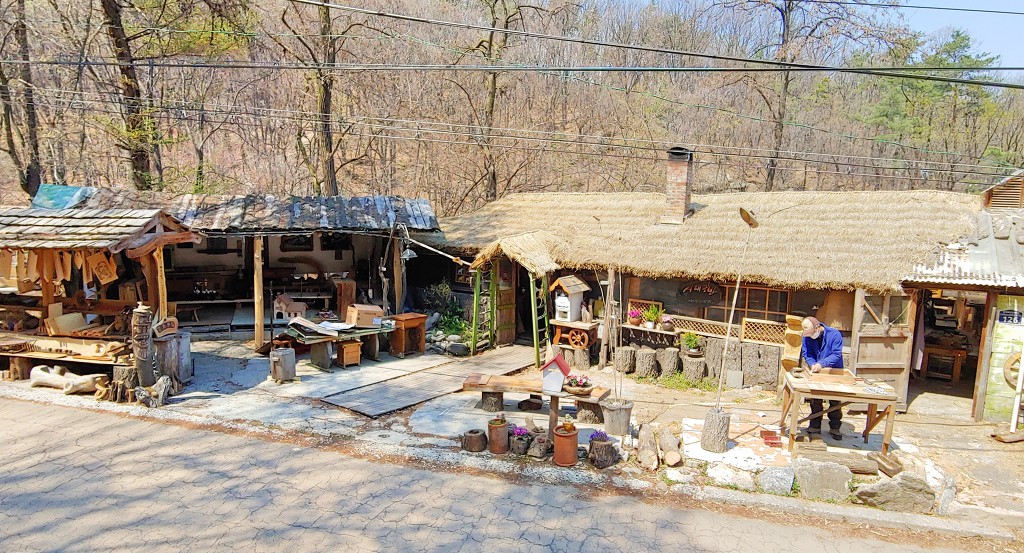 목공예를 하는 아담한곳 앞을 지나 갑니다