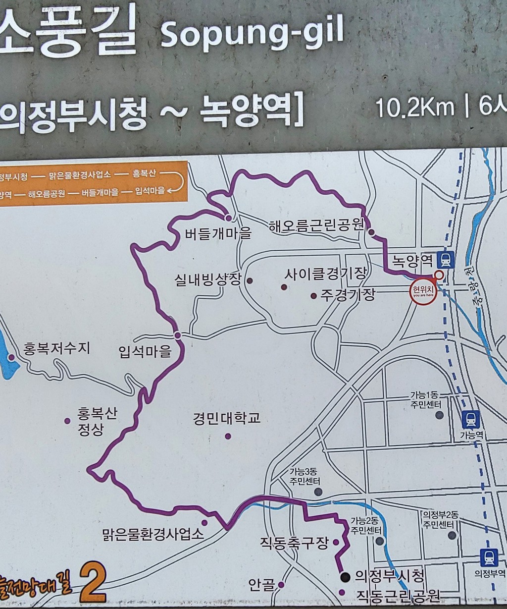 이상으로 의정부둘레길 걷기 1일차로 망월사역에서 1코스를 출발 의정부시청을 지나 홍복산을 넘어 녹양역 까지 걷기를 마무리 합니다