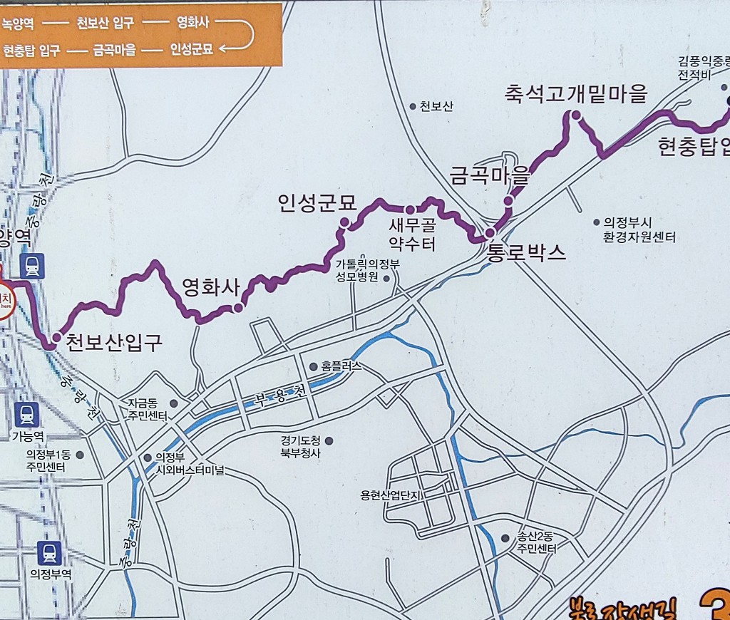 오늘에 종점이며 의정부 소풍길 2코스 종점 이기도 합니다. 또한 3코스 출발점 이기도 합니다. 녹양역은 인천역에서 소요산 까지 왕복하는 지하철 1호선 입니다