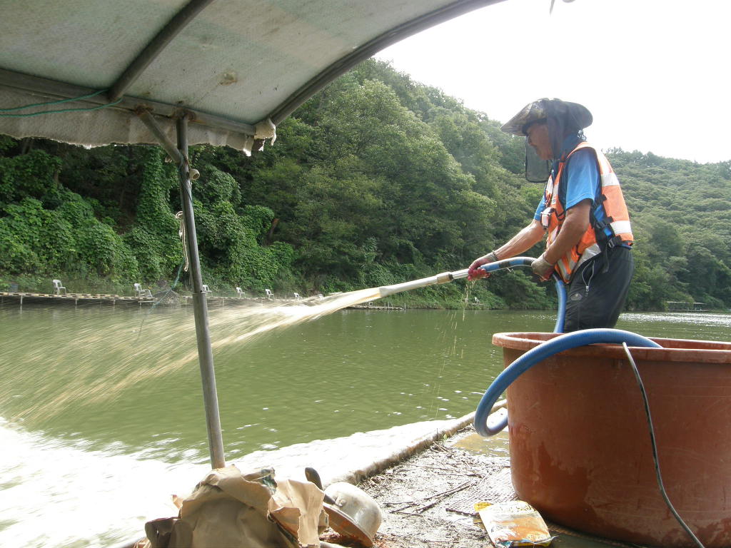 비는 오고 습하더라도 물속의 고기들은 밥을 요구합니다. 밥을 주세~요오!