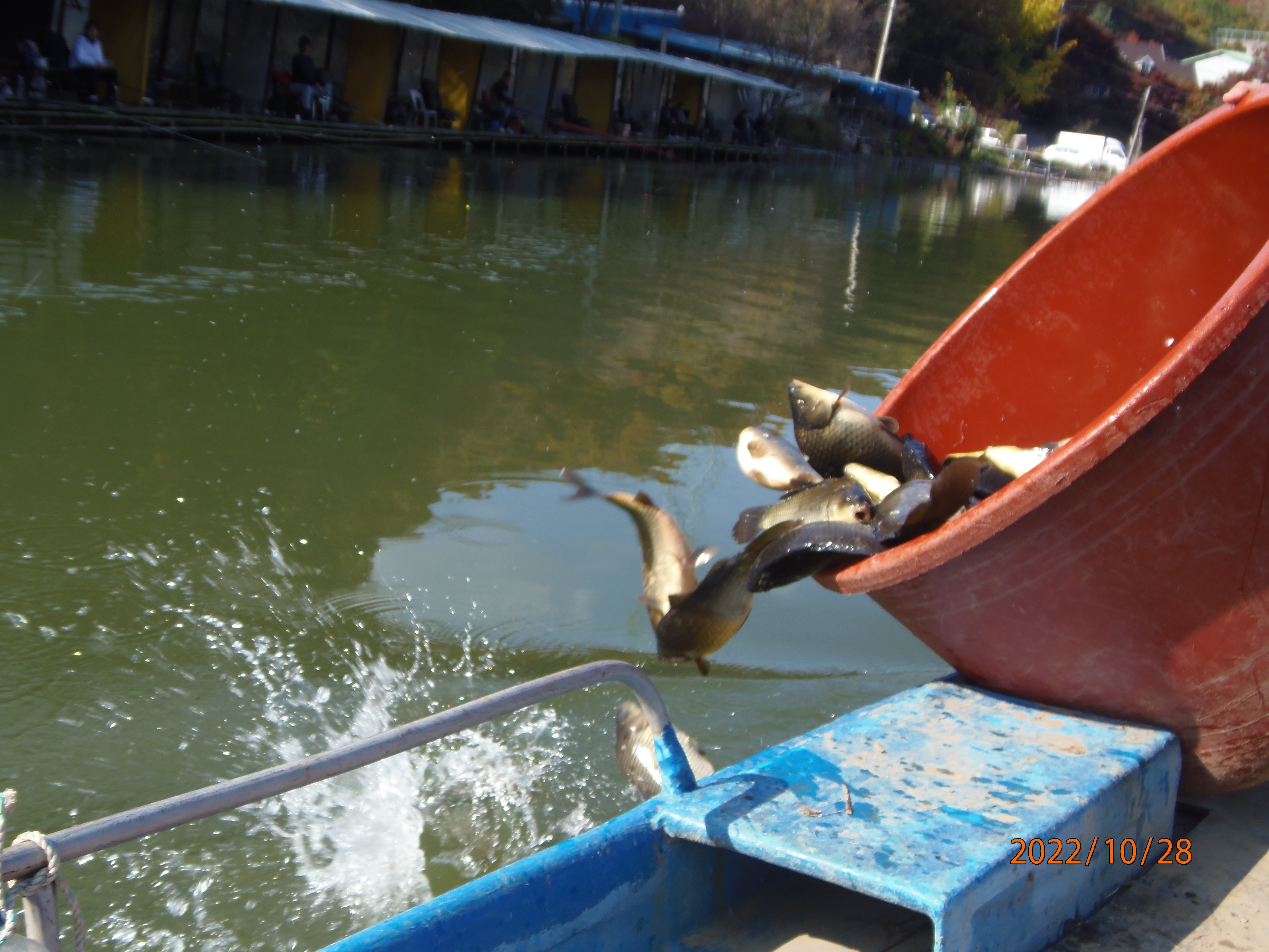 오늘 붕어 400kg을 방류했습니다. 저는 서서히 겨울 낚시를 준비합니다.