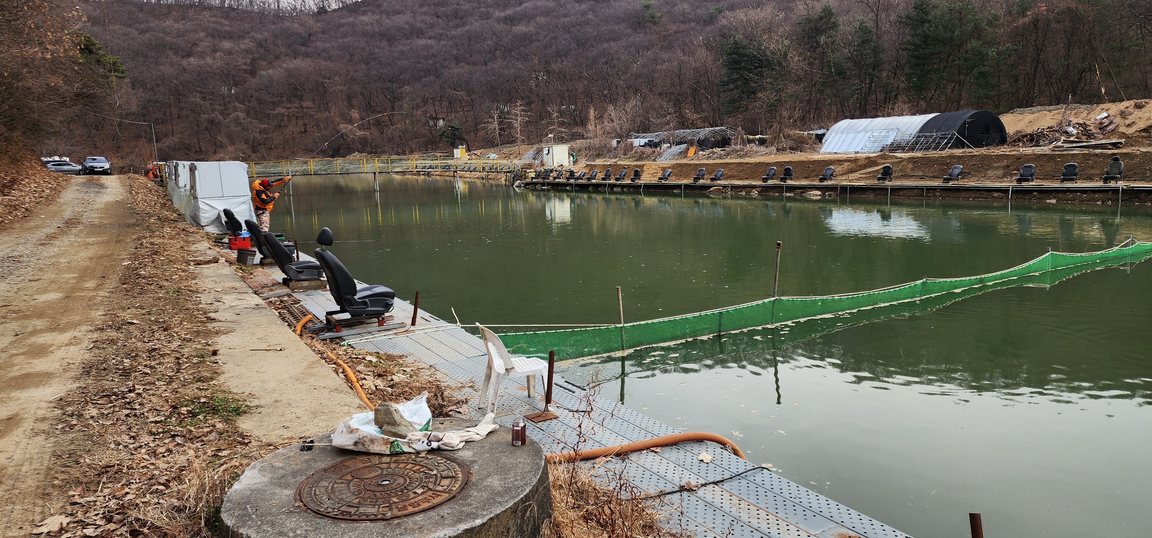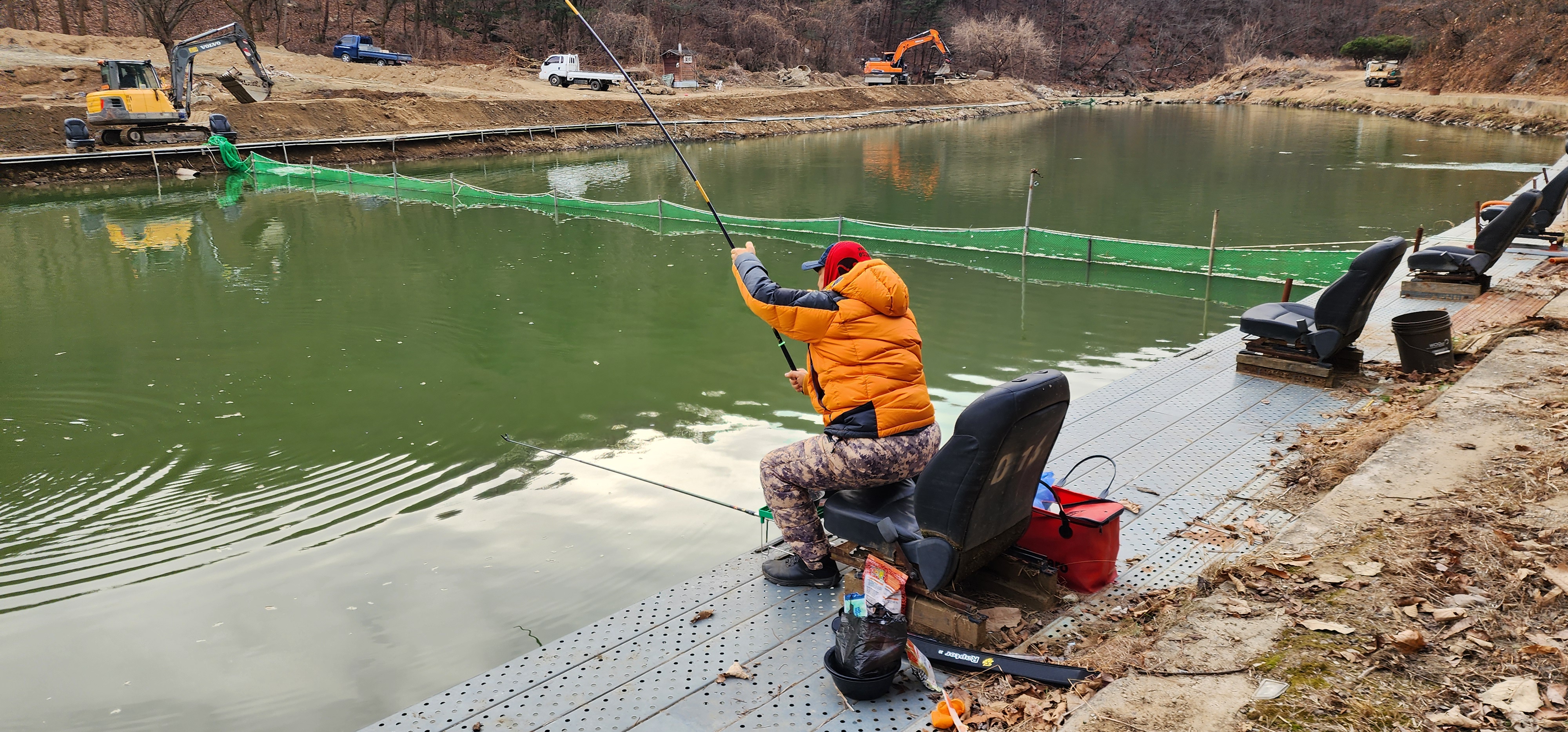 건너편 지역은 내일 아침에 의자를 고정시키면 기대하던 깊은 수심이 기다리고 있습니다. 높은 수온과 깊은 수심이 어우러지는 새로운 맛을 즐길 수 있습니다. 다음주에는 지붕까지 완성합니다.