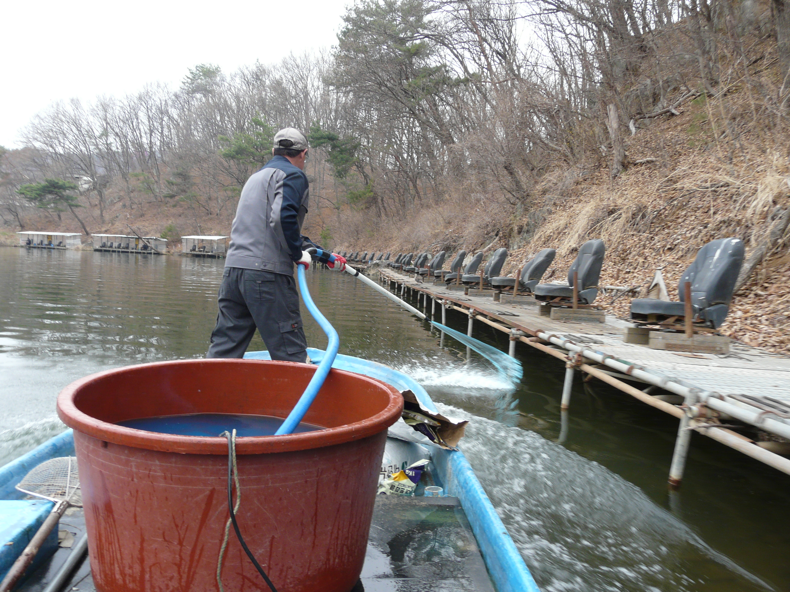 입질이 요란 할 정도로 활성도가 좋습니다. 오늘도 아가미 거머리를 제거하기 위해 소독을 실시했습니다.
