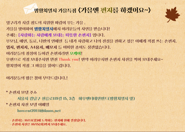 가을을 맞이하여 밤황치열시에서 여러분들의 사연을 받습니다!