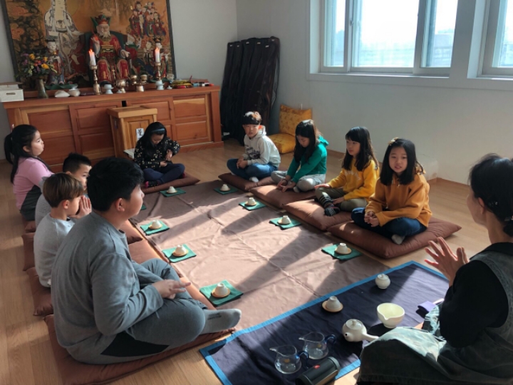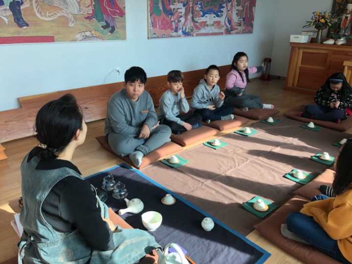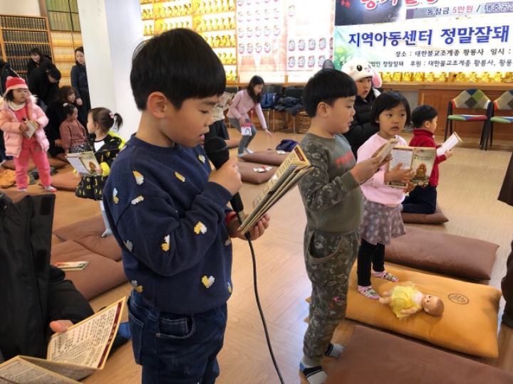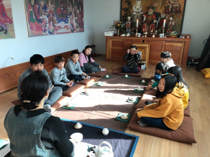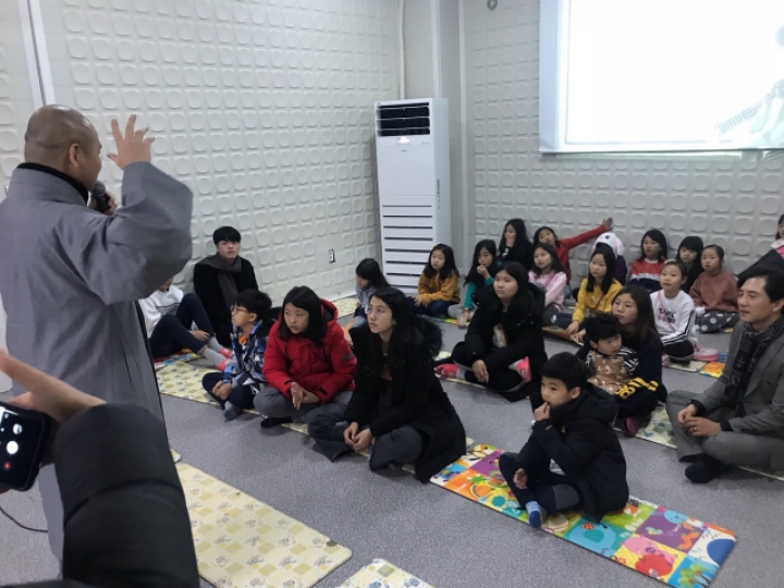 아이들 부모들은 법당조차도 안가는 사람이 적지 않으니 공양간에 앉혀놓고 이렇게 라도 자꾸 법회를 하려 노력합니다.
