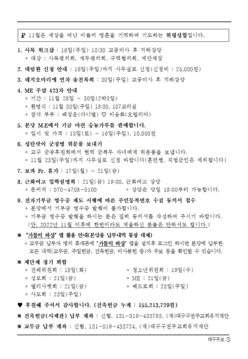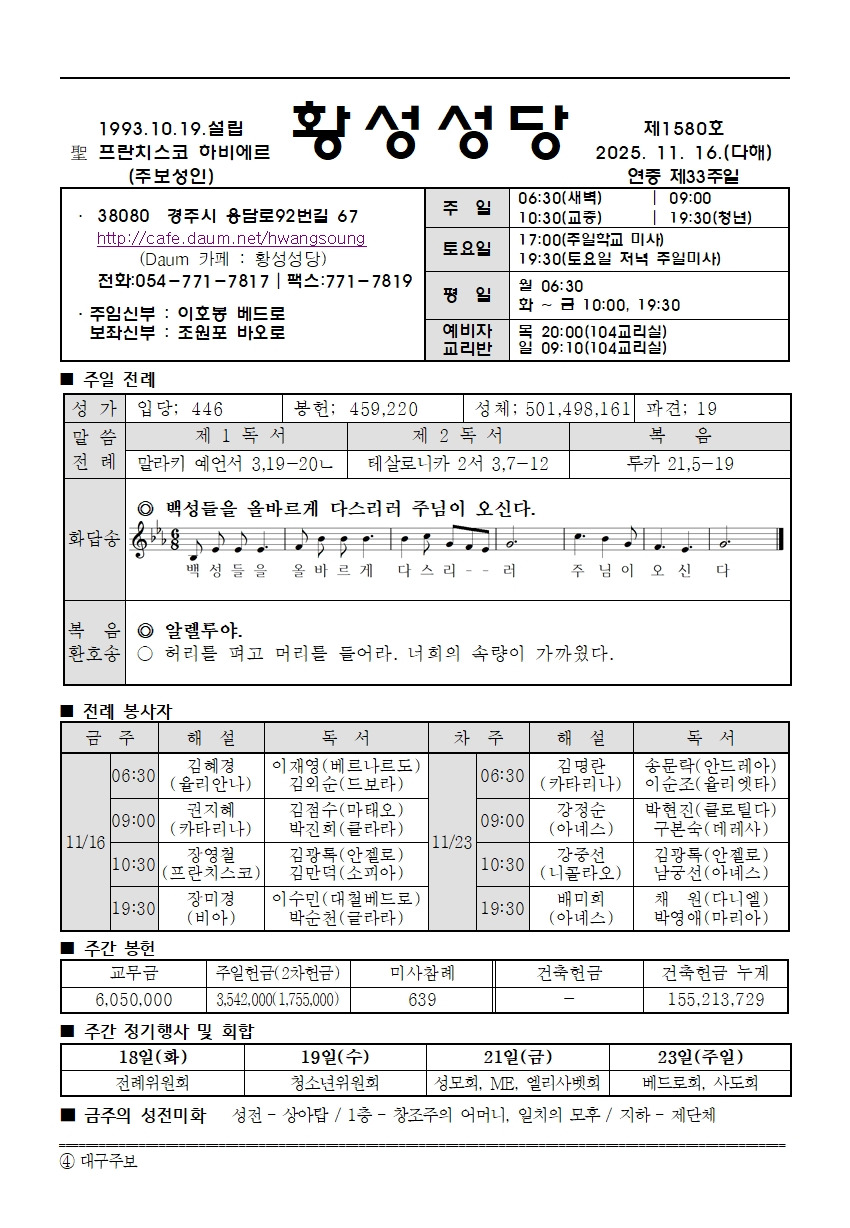 연중 제33주일 주보 작성자복지천사 가브리엘|작성시간25.11.13|조회수230 목록 댓글 0 글자크기 작게가 글자크기 크게가 다음검색 현재 게시글 추가 기능 열기 북마크 공유하기 신고 센터로 신고 댓글 댓글 0 댓글쓰기 답글쓰기 댓글 리스트