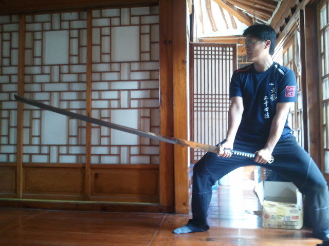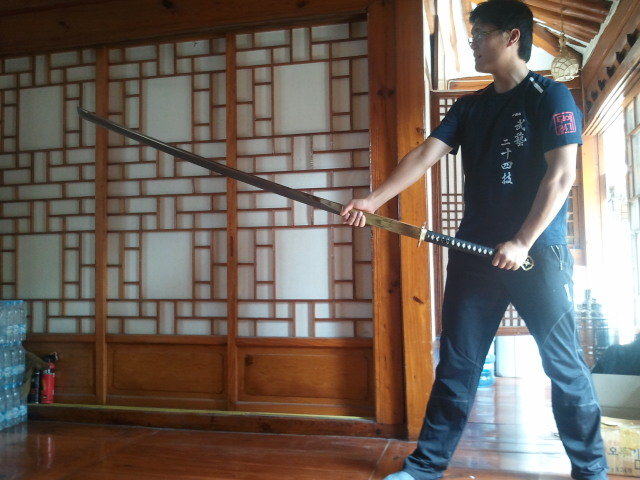 고증방식에서 여러단체들이 주척을 적용(약120cm정도)하지만 저희는 영조척을 적용(약190cm)합니다. 저희 단체 소유의 쌍수도 가검은 있었지만 진검은 없었습니다.