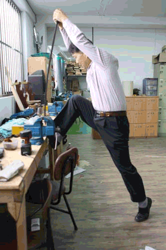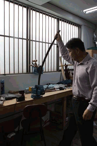 열처리 과정을 거친 도신입니다. 대단한 탄력이지요? 제 몸이 82키로 정도 나가는데 완전히 매달려도