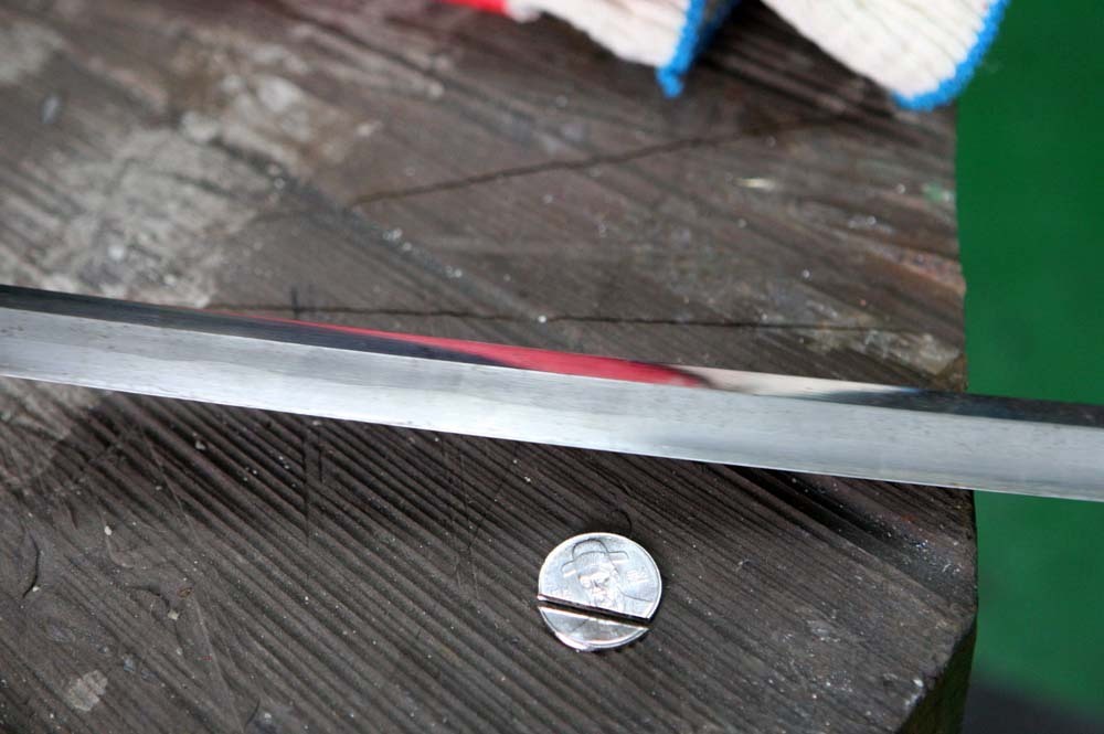 이 일반단조 도검도 열처리 과장을 거치면 금형단조와 똑 같이 절대로 휘지 않는 탄력을 갖습니다.