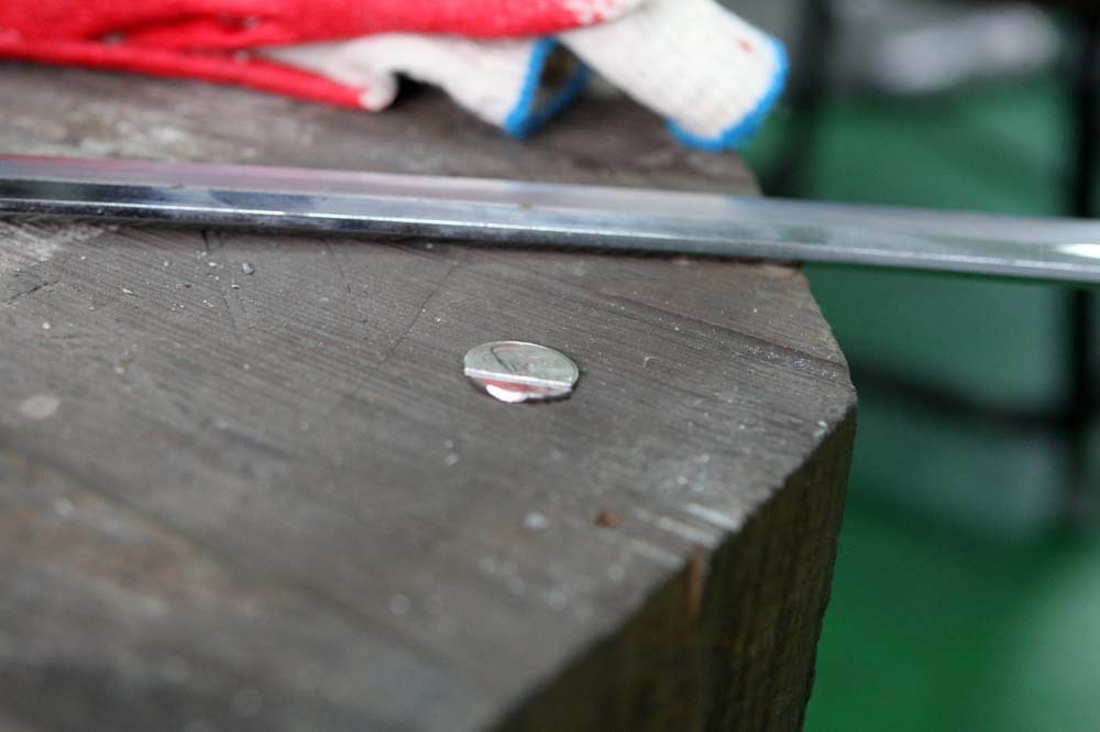 보시는 봐와같이 보통 출고되는 육각도검입니다. 위 도검으로 백원짜리 동전을 잘라보겠습니다.