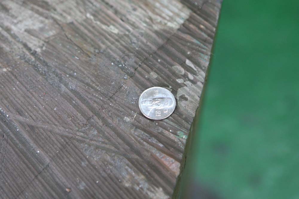 도신의 상태는 보시는 봐와 같이 하이스강 삼각도는 깨지듯이 떨어져 나가고 금형단조 삼각도는 찢어지듯이