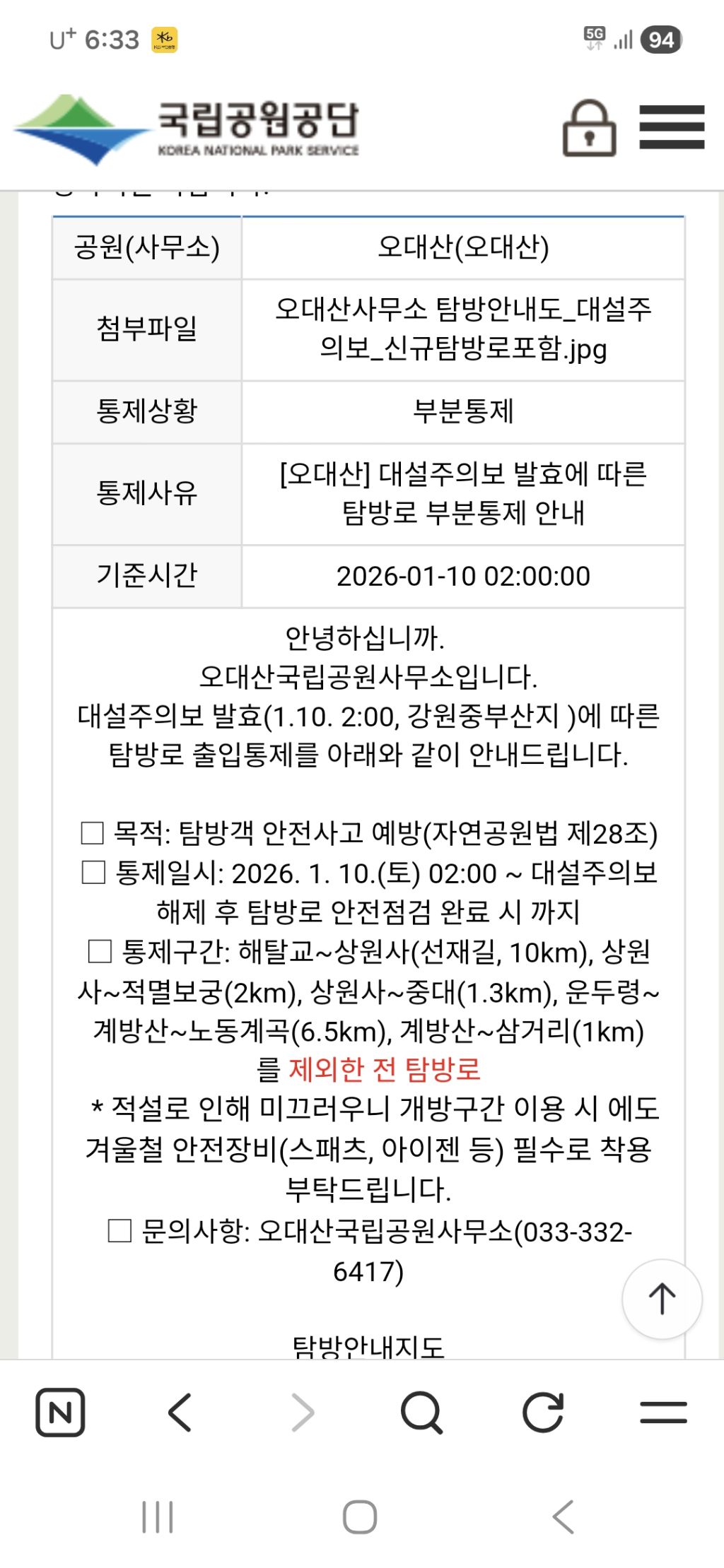 오대산 선재길 작성자코도라010.9072.4288|작성시간26.01.12|조회수25 목록 댓글 0 글자크기 작게가 글자크기 크게가 오대산 강추위로 탐방로 통제되어 선재길로...그런데 통제가 풀려...중대사까지만 다녀옴... 다음검색 현재 게시글 추가 기능 열기 북마크 공유하기 신고 센터로 신고 댓글 댓글 0 댓글쓰기 답글쓰기 댓글 리스트