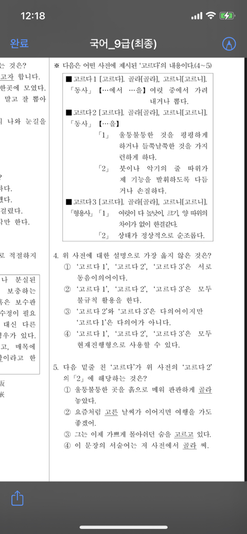 <고르다>에 대해서 동사 2개와 형용사 1개의 동음이의어를 제시하고 묻고 있습니다.
