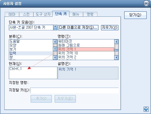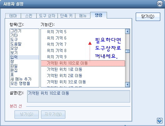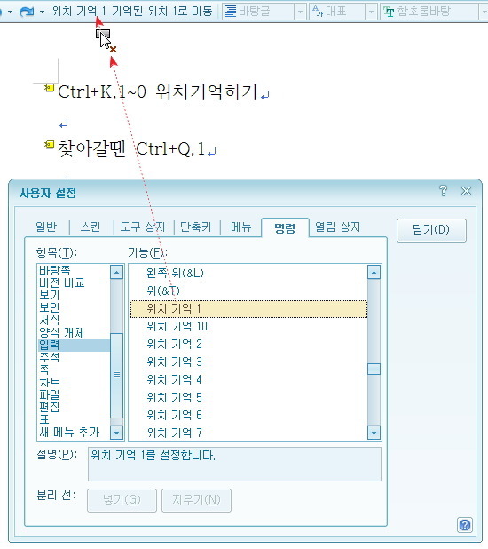한글 워드에 위치기억이라는 기능을 알고 있습니까?