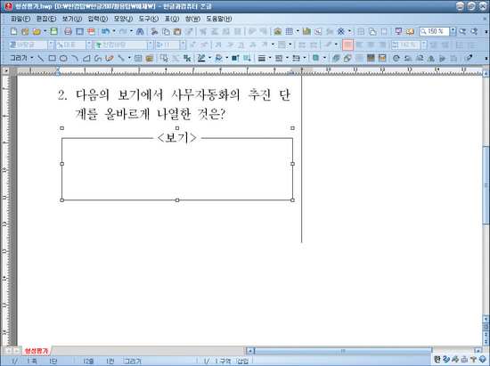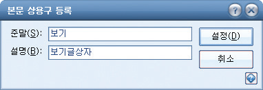 4) 같은 방법으로 글자 외에도 표, 글상자, 그림등 한글2007에서 사용하는 모든 내용들을 서식 그대로 등록할 수 있습니다. 글상자를 사용하여 만든 <보기> 상자를 선택한 후 상용구를 등록하는 단축키 <Alt> + <i> 를 누릅니다.