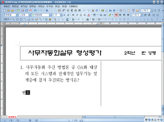 출처 : 실무에서 바로 통하는 한글 2007 파워 사용법, 오영미 지음, 한글과 컴퓨터 발행