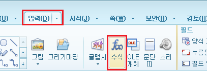 [입력] 탭의 [수식]을 누른다.