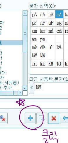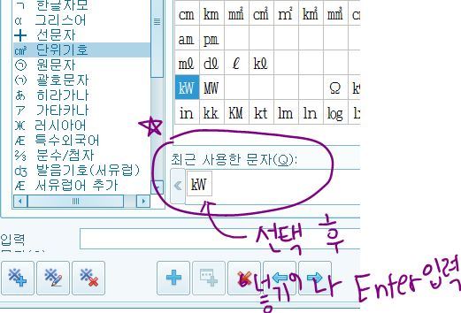 문자표에서 찾았었던 kW를 또다시 입력하고 싶을 때엔