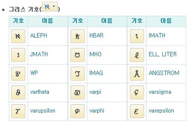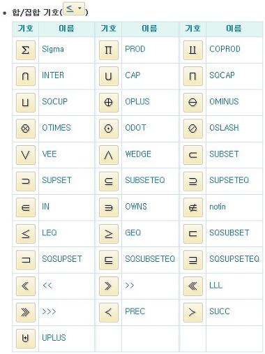 수학식은 역시 수식을 써야 제대로 된 모양을 만들 수 있습니다.(첫째-특수문자, 둘째-글자겹치기, 세번째-수식)