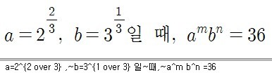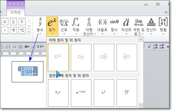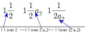 예를 들어 1 1 over 2는 대분수를 나타낼 수 있습니다. a^2 2라고 쓰면 앞의 2만 위첨자가 되는 것이죠.