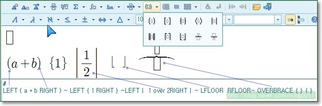 명령어 입력칸이 편리한 경우도 있습니다. 아래 같은 괄호의 경우 (, {, [ 등을 LEFT, RIGHT 없이 한쪽만 입력하면 되니까요.