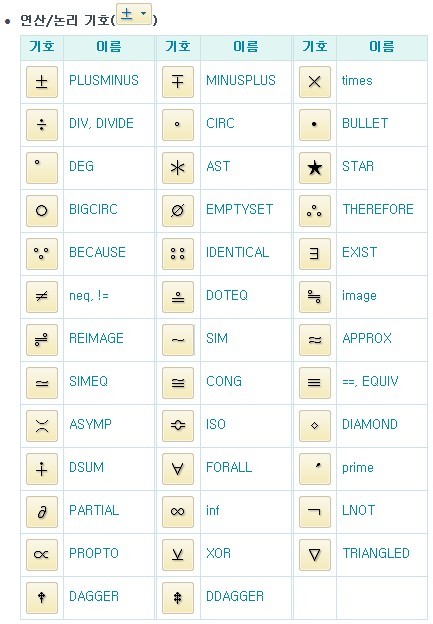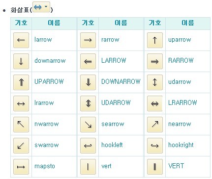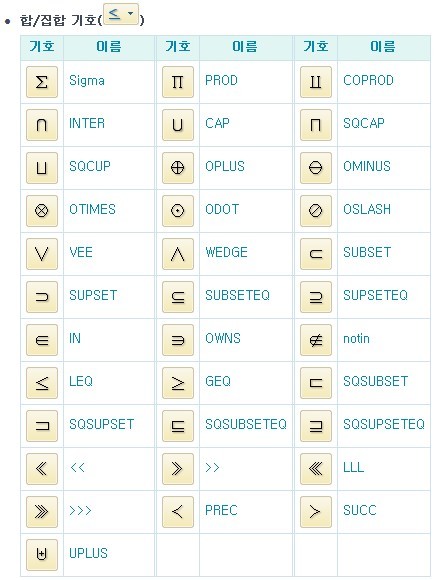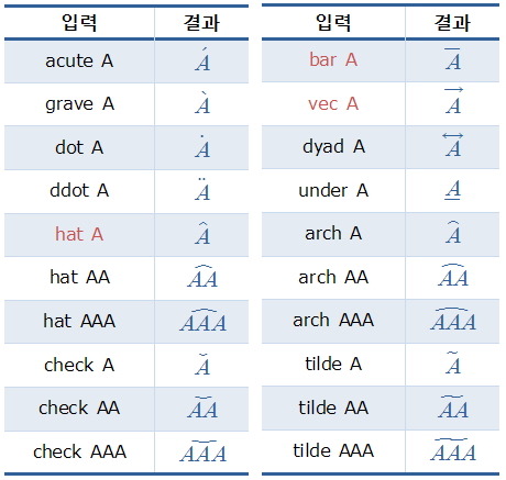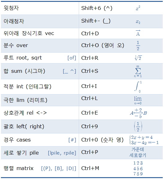수식은 본문과 입력하는 방식이 다르기 때문에 아래 입력기호를 반드시 알고 있어야 합니다.