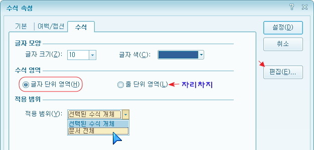 - 한글 수식이 이탤릭체라 하위 버전의 경우 본문 오른쪽에 걸리면 끄트머리가 잘리는 경우가 생길 수 있습니다. 이럴땐 수식 끝에 빈칸을 ~~좀 넣어주면 됩니다.