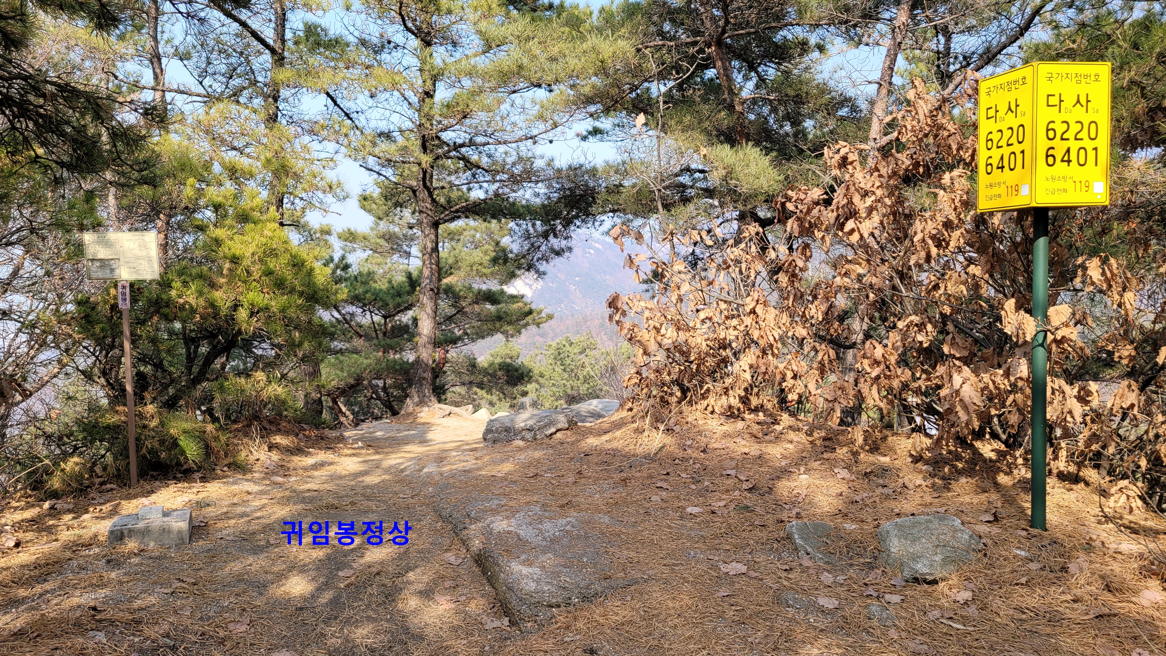 횡단보도 건너 우측 유리터널옆 계단을 올라가면 귀임봉으로 가는 능선 초임이다.