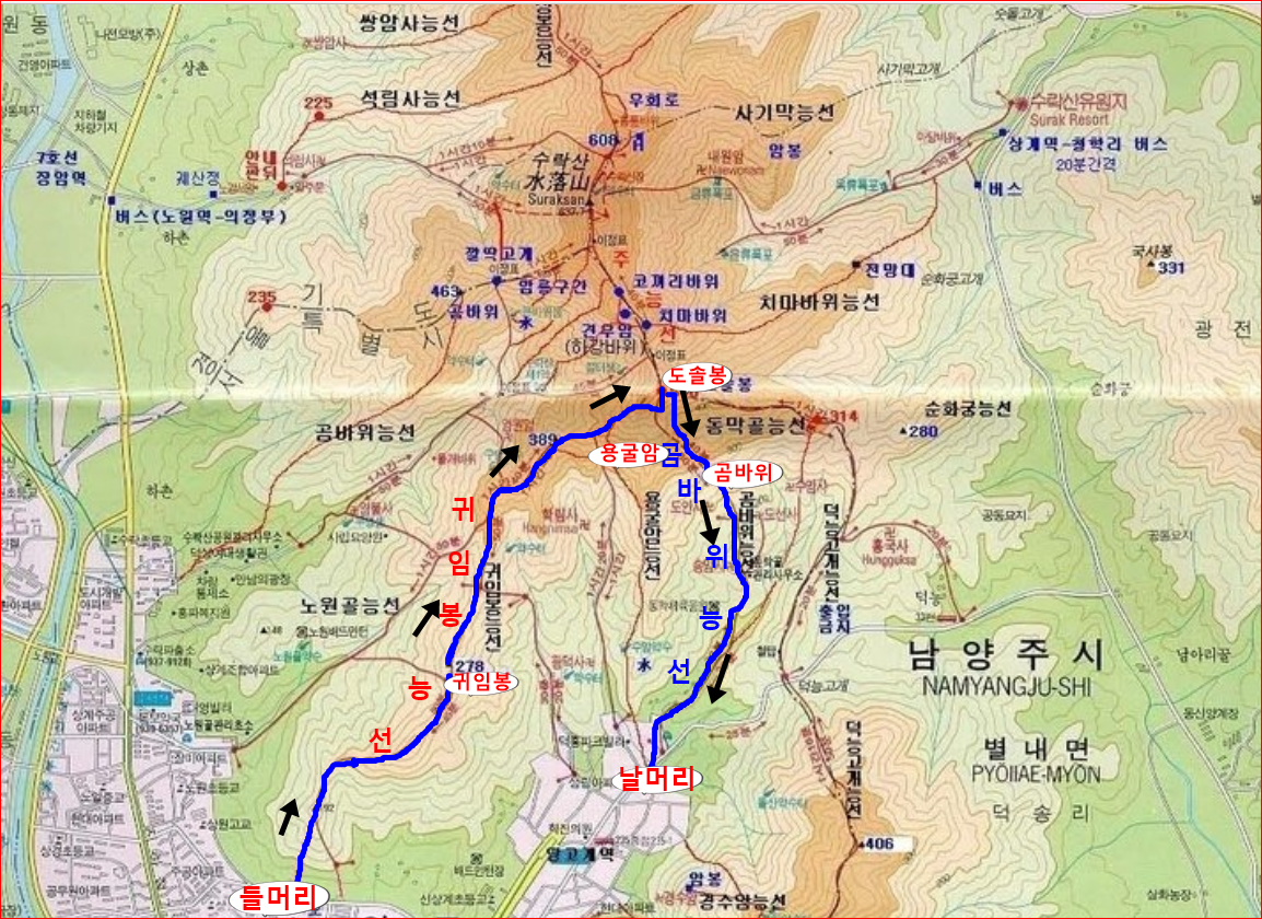 1. 교 통 및 들머리 찿아가기 : 7호선 마들역 1번출구로 나와 직진하여 신한은행방면으로 가다가