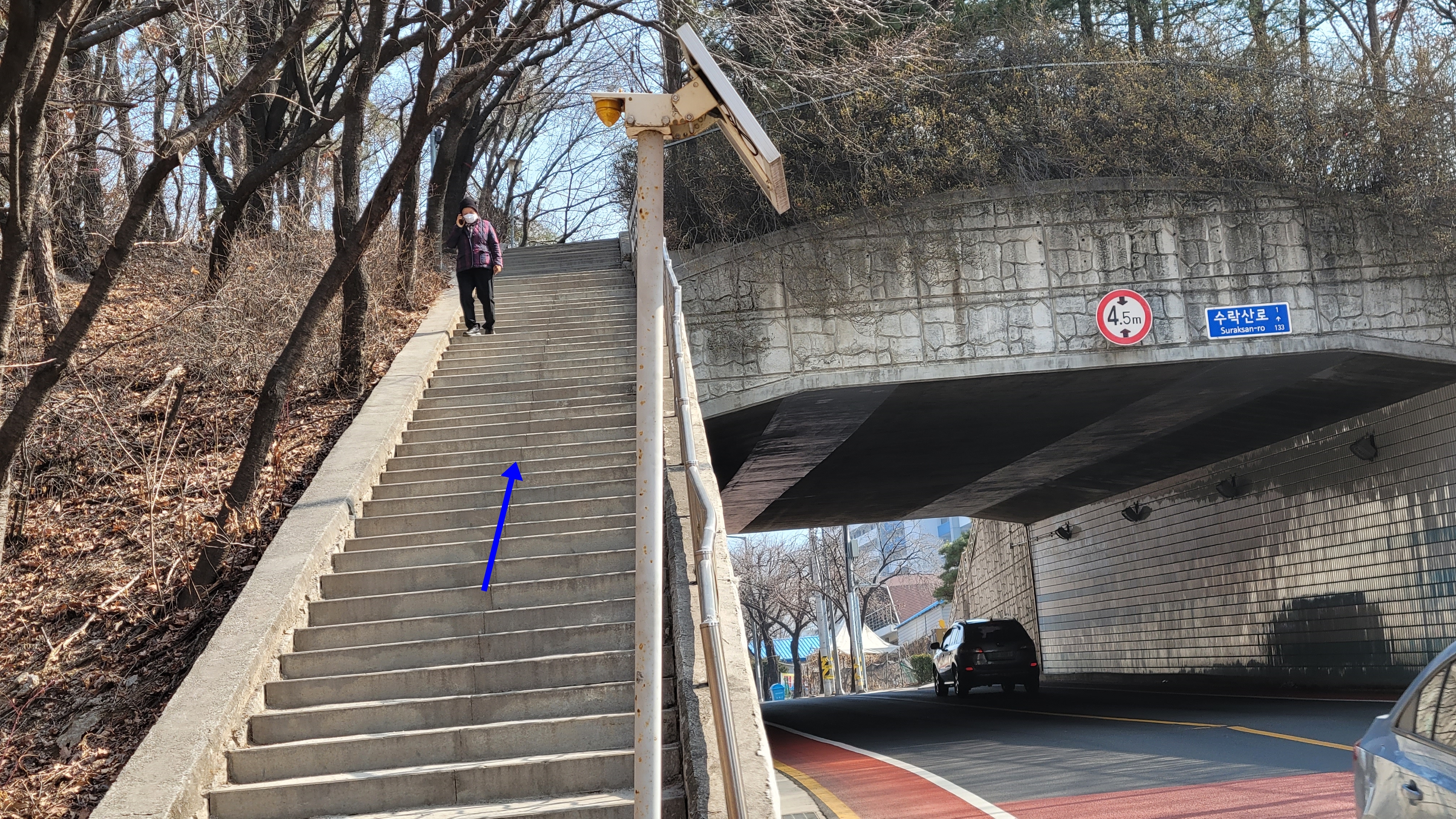 위 : 횡단보도를 건너서 우측 계단위로 오른다