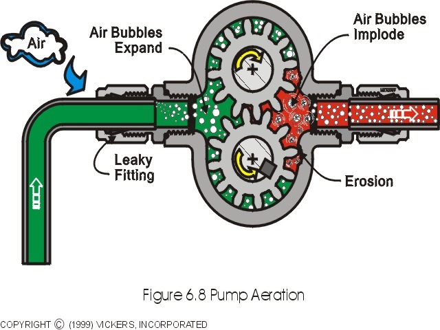 두번째 그림은 흡입쪽 배관사이로 공기를 흡입하게 되므로서 발생되는 또 다른 현상으로 인한 기기수명을 저하 하는 원인이 됩니다