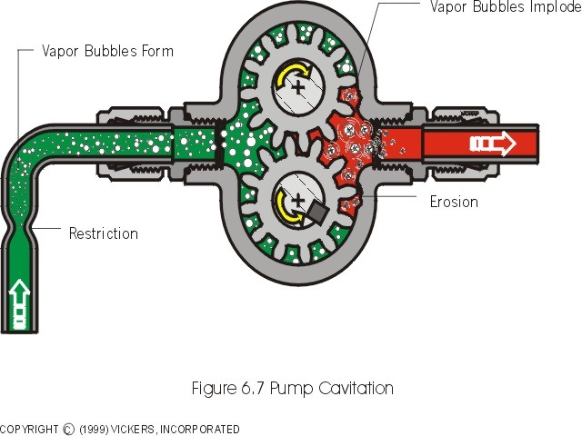급속으로 고압이 생기고 파괴되면서 소멸 됩니다. 그 기계적 충격에 의해 펌프내부의 기기를 손상시키게 됩니다..
