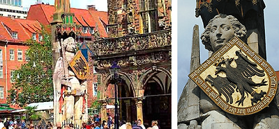 시청, 시장권과 제국의 사법권을 상징하는 롤란트 상(1404), 그림같이 아름답게 줄지어 있는 박공으로 만든