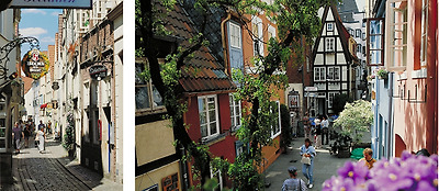 구시가지에 위치한 슈노어(Schnoor)거리는 수공예장인들의 거주지로 한국으로 따지자면 서울의인사동쯤 되는 거리이다. 목조건물이 늘어선 가운데 돌이 깔린 길을 걸으며 좌우 상점의 수공예품들을