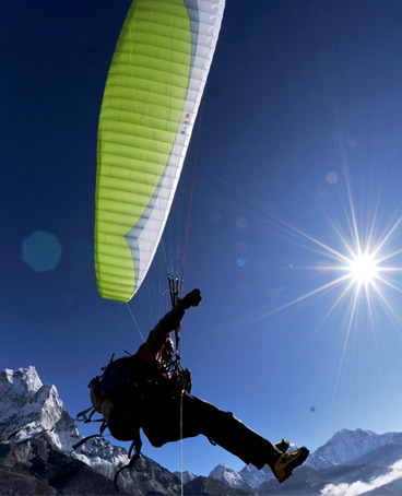 박정헌 대장 팀의 세계 최초 히말라야 패러글라이딩 횡단 모습