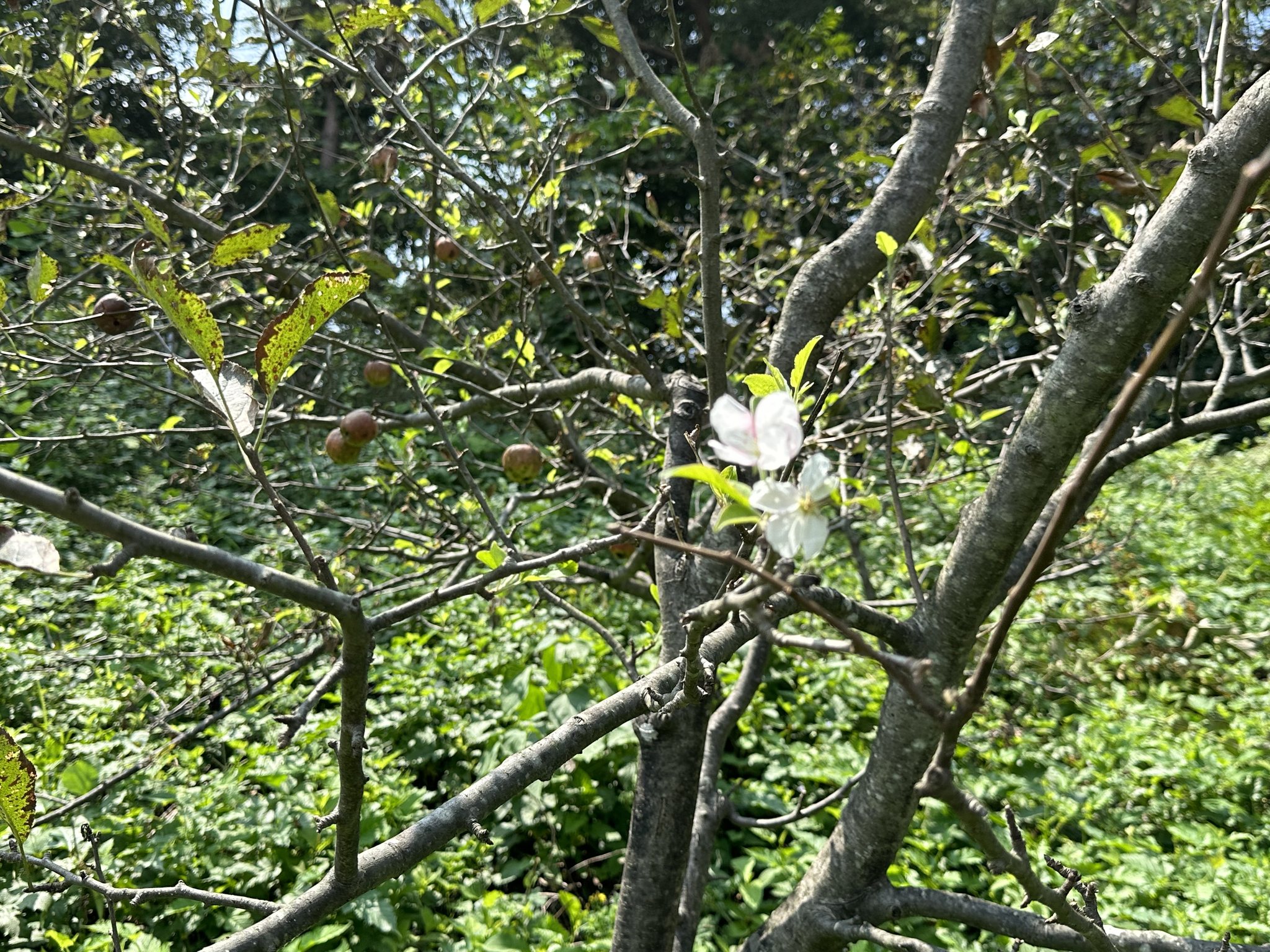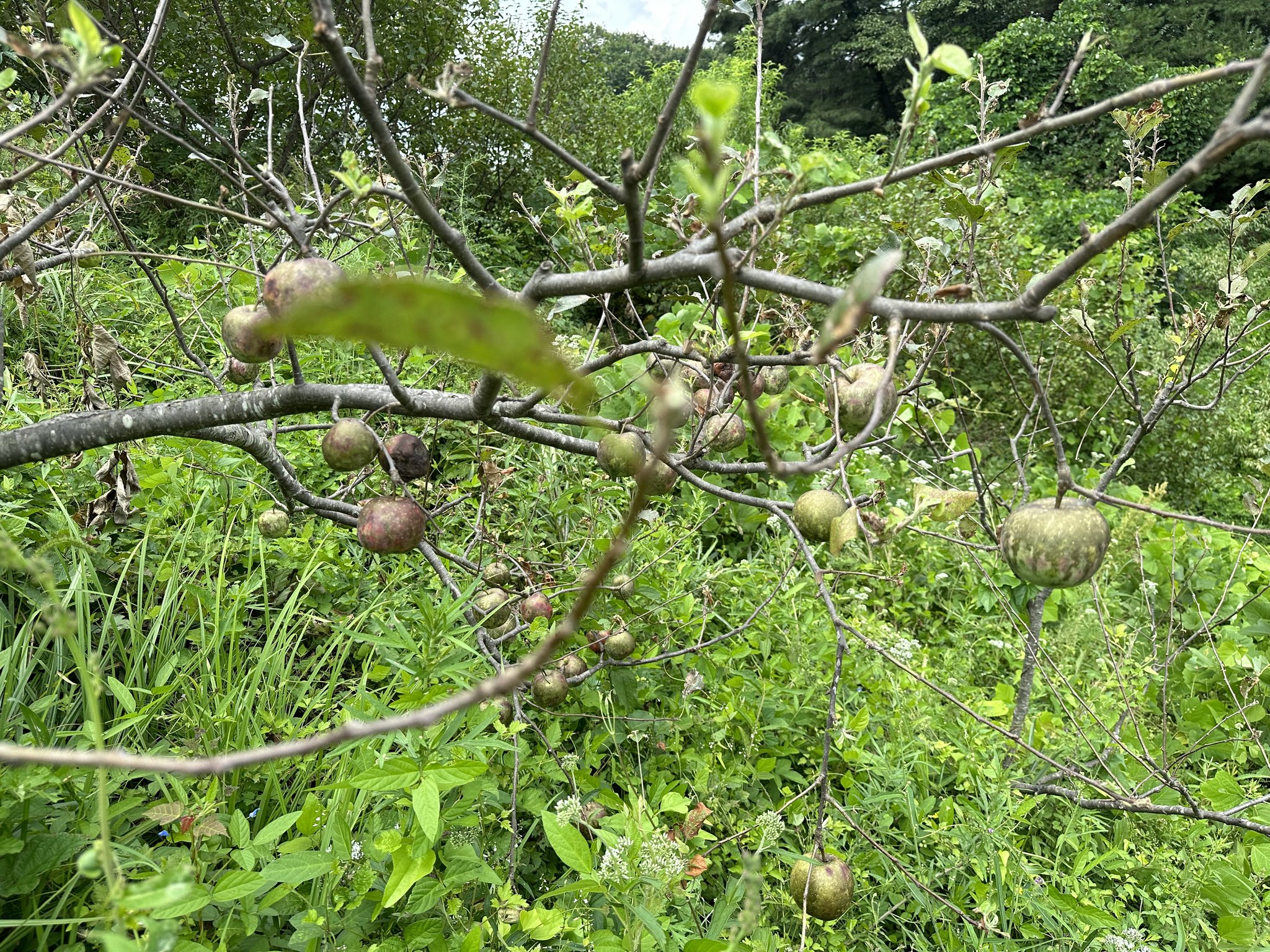여기에 일본 니이가타에서 나의 친구 히데무라(秀村硏二) 교수가 자택의 정원에서 심어놓고 비료와 농약 등 아무런 투입이 없이 자연재배로 키운 17년된 사과나무 한 그루에서 수확한 사과 사진 두 매를 공유하겠다. 인터넷으로 그 성장과정을 계속 봐온 사과나무에서 얻은 것이다. 그 색갈이며 형태가 완벽했다. 또 이와 함께 내가 오래 전에 일본의 자연재배 현장탐방 과정에서 일본 자연재배 사과농사의 선구자로 손꼽히는 키무라 아키노리(木村秋則)씨의 사과원(@아오모리靑森현 히로사키弘前)에서 찍은 사진 두 매를 공유하고자 한다. 키무라씨는 내가 탐방했던 12년 전(2011-09-09)에 이미 자연재배 한 지 30여년이 된 사과나무였다. 당시 내가 본 사과 하나하나가 모두 상품으로서 완벽했다. 이 두 사례로 미루어 봐서 혜림원의 자연농은 희망적인 기대의 끈을 더욱 확고하게 잡기에 충분하다고 생각한다. 역시 자연농은 ‘느림과 기다림의 철학’이다.