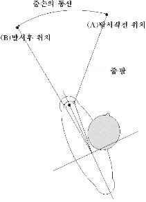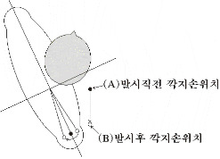 [그림2] 발시후 힘의 작용에 따른 깍지손의 동선 | |