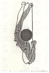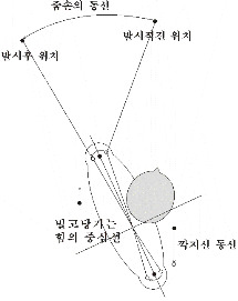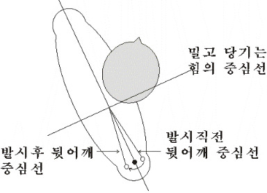 [그림4] 발시후 힘의 작용과 반작용에 따른 줌손과 깍지손의 동선 | |