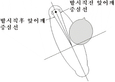 가)발시직후 일어나는 양어깨의 작용과 반작용 운동방향을 따른다.