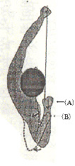 이와같은 동선을 따라 발시할려면 뒷팔의 팔꿈치가 깍지손과 함께 반드시 움직여 길을 열어 주어야 하며 작용으로서 깍지손의 후진은 반작용현상을 유발해서 줌손의 동선을 만들 동기를 부여한다.