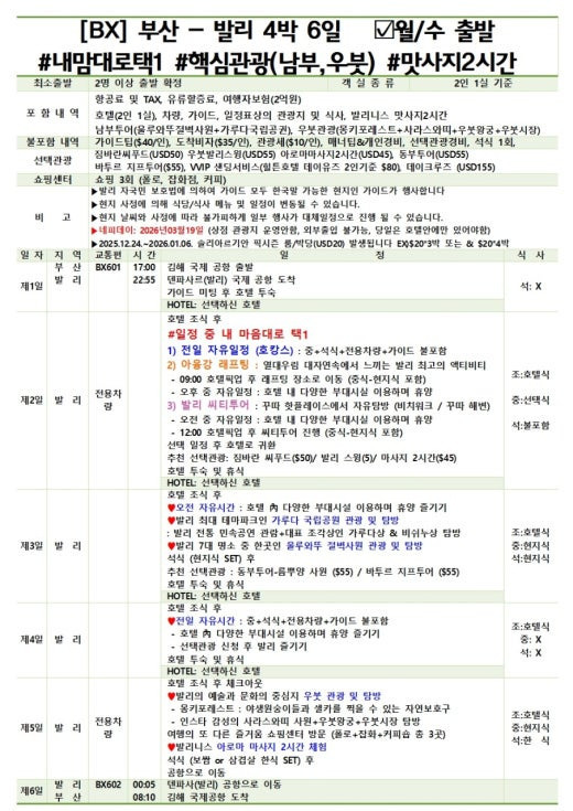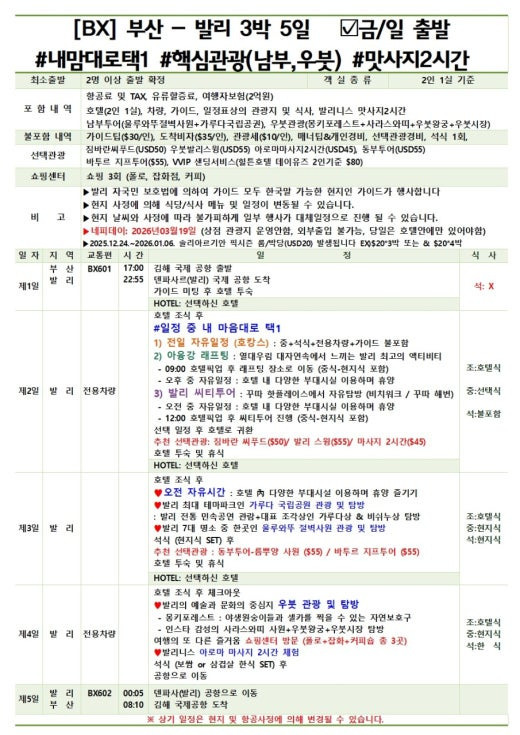 โ๏ธBX601 ๋ถ์ฐ 17:00 - ๋ดํ์ฌ๋ฅด 22:55