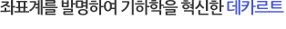 | 근세 철학의 아버지로 불리는 프랑스 수학자 르네 데카르트(René Descartes, 1596-1650)가 1637년 ‘방법서설’(方法敍說, Discours de la méthode)을 발표하면서부터 이 상황에 돌파구가 열렸다. 방법서설의 부록 세 편 중 한 편에 오늘날 ‘직교 좌표계’ 혹은 ‘데카르트 좌표계’(Cartesian coordinate system)라고 부르는 개념이 들어 있었던 것이다. 위의 그림처럼 평면에 동서 방향 및 남북 방향으로 각각 x축, y축이라 부르는 서로 수직인 두 직선을 그리고, 만나는 점을 원점 O라 한 것을 데카르트 좌표계라 부른다. 이렇게 하면 평면 위의 임의의 점 P는 각 축에 내린 수선의 발이 결정하는 두 숫자 a, b의 순서쌍 (a, b)와 일대일 대응한다. 누구나 생각할 수 있을 정도로 간단해 보이는 이런 발상이 현대 수학의 지평을 열었다는 것은 상당히 놀라운 일이다. 차츰 보겠지만, 좌표계를 도입하면 기하학의 많은 문제를 대수학의 문제로 바꿀 수 있다. 보조선을 긋지 않고도(!) 대수 방정식을 풀어서 기하학의 문제를 해결하는 시대가 열린 것이다. | |