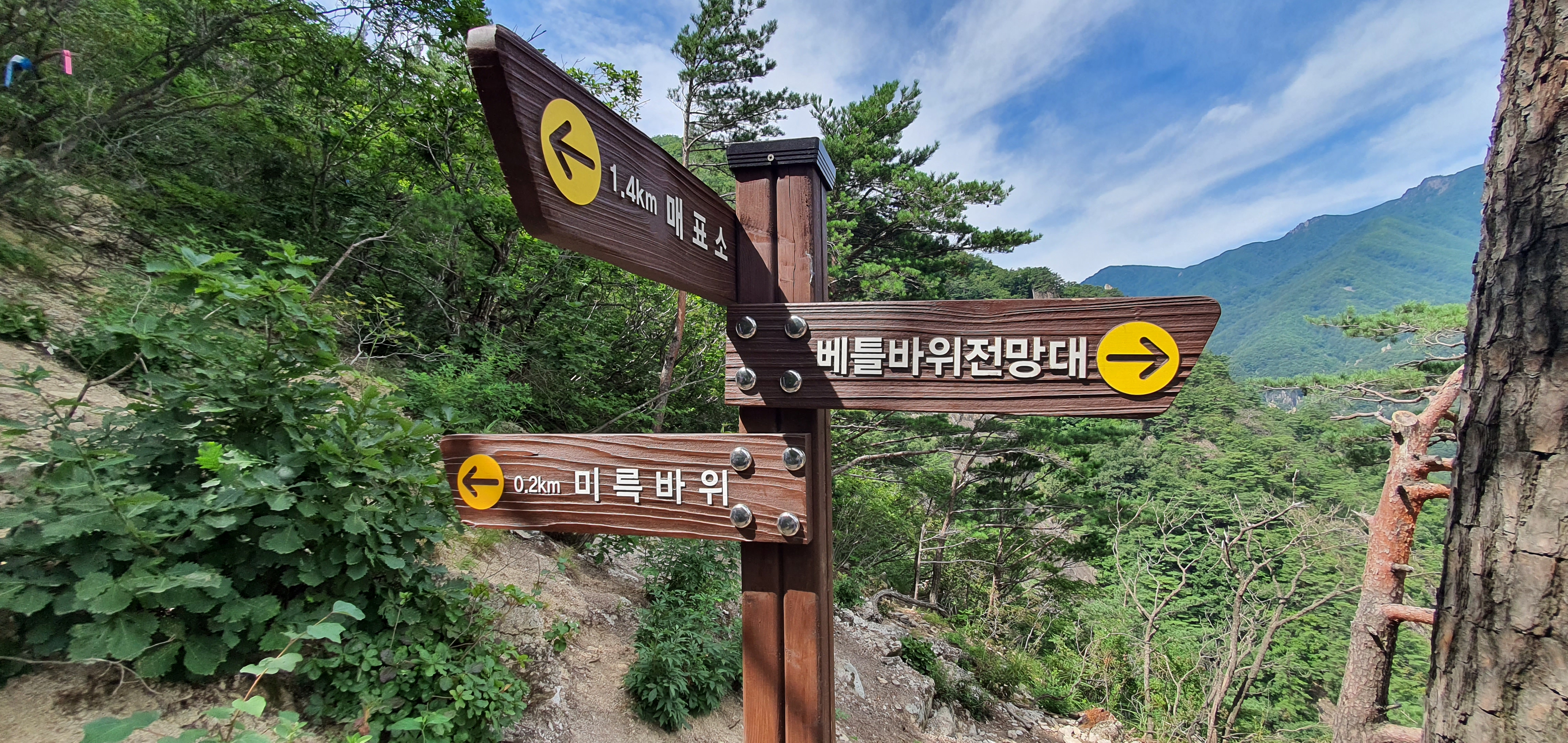 [G코스] 댓재(800m)→통골재→두타산(1353m)→배틀봉→미륵바위→배틀바위전망대→매표소→대형주차장 (약12.2km. 6시간30분)