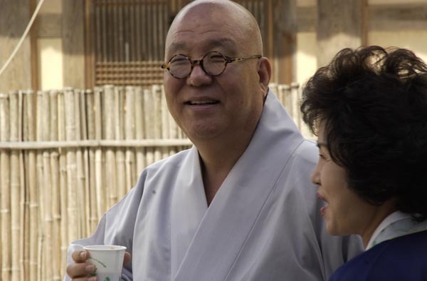 내장사 스님이 신도와 차를 마시며 ..