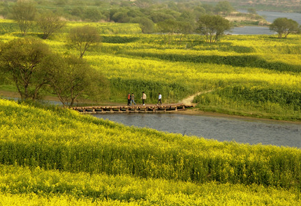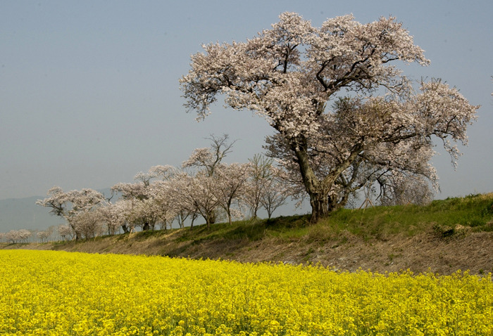 강진 탐진강가에서 유채와 벗꽃이 잘 어울려요.