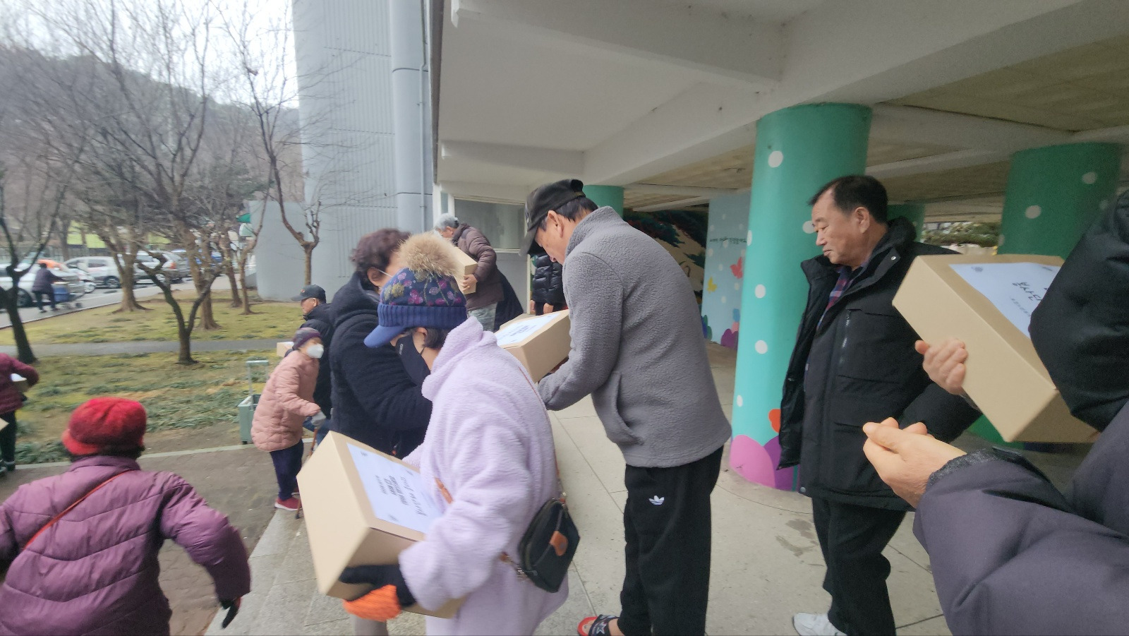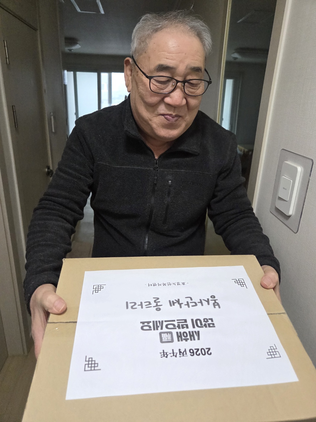 이제 어르신들에게 2026년 설 명절 선물을 전달하러 갑니다.