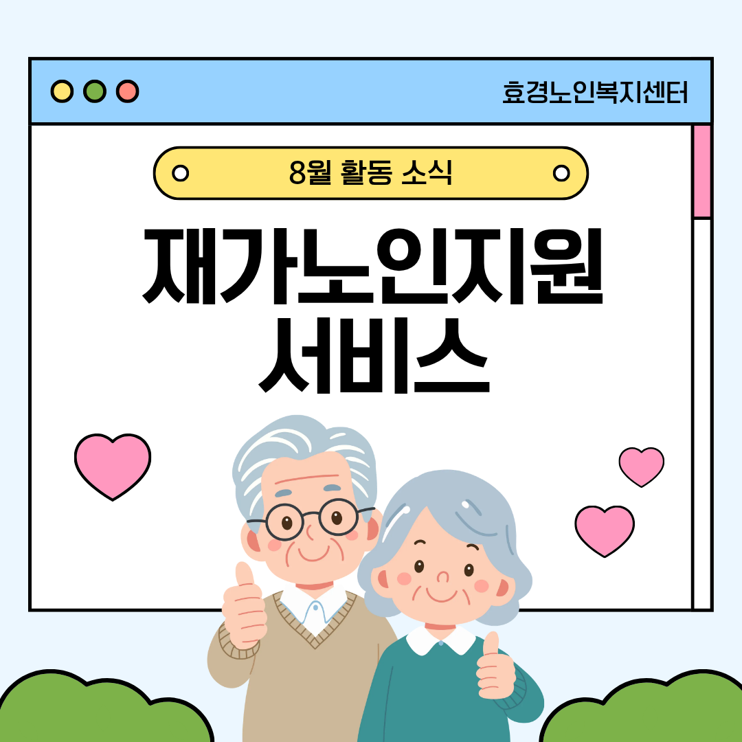 [2025년]효경톡톡 8월호 재가노인지원서비스 작성자효경노인복지센터|작성시간25.09.02|조회수8 목록 댓글 0 글자크기 작게가 글자크기 크게가 다음검색 현재 게시글 추가 기능 열기 북마크 공유하기 신고 센터로 신고 댓글 댓글 0 댓글쓰기 답글쓰기 댓글 리스트