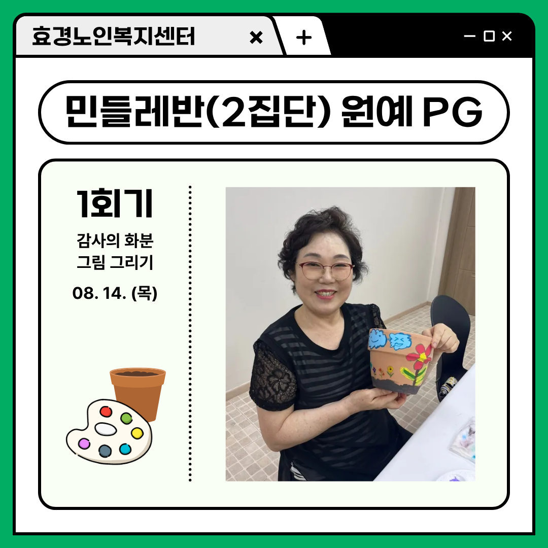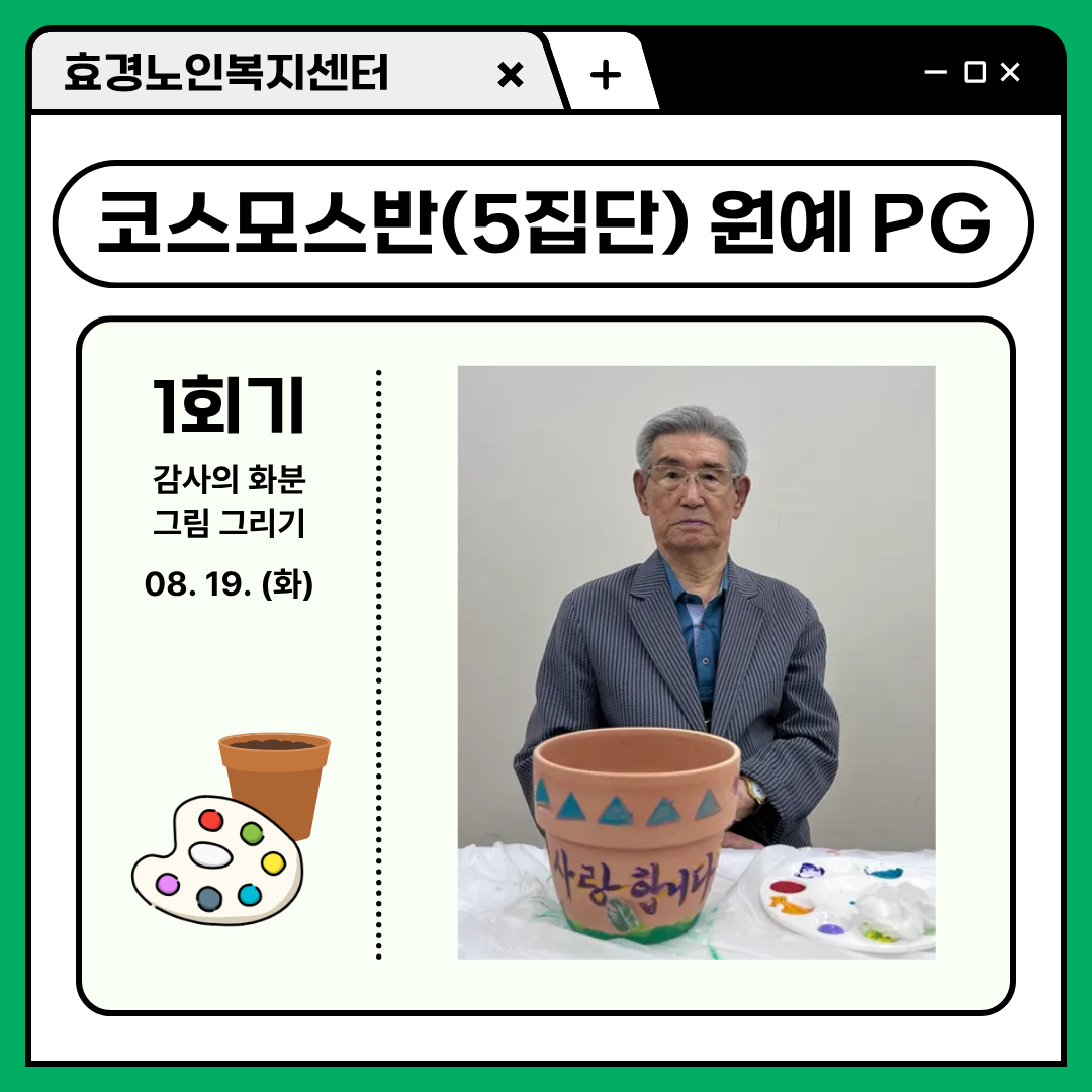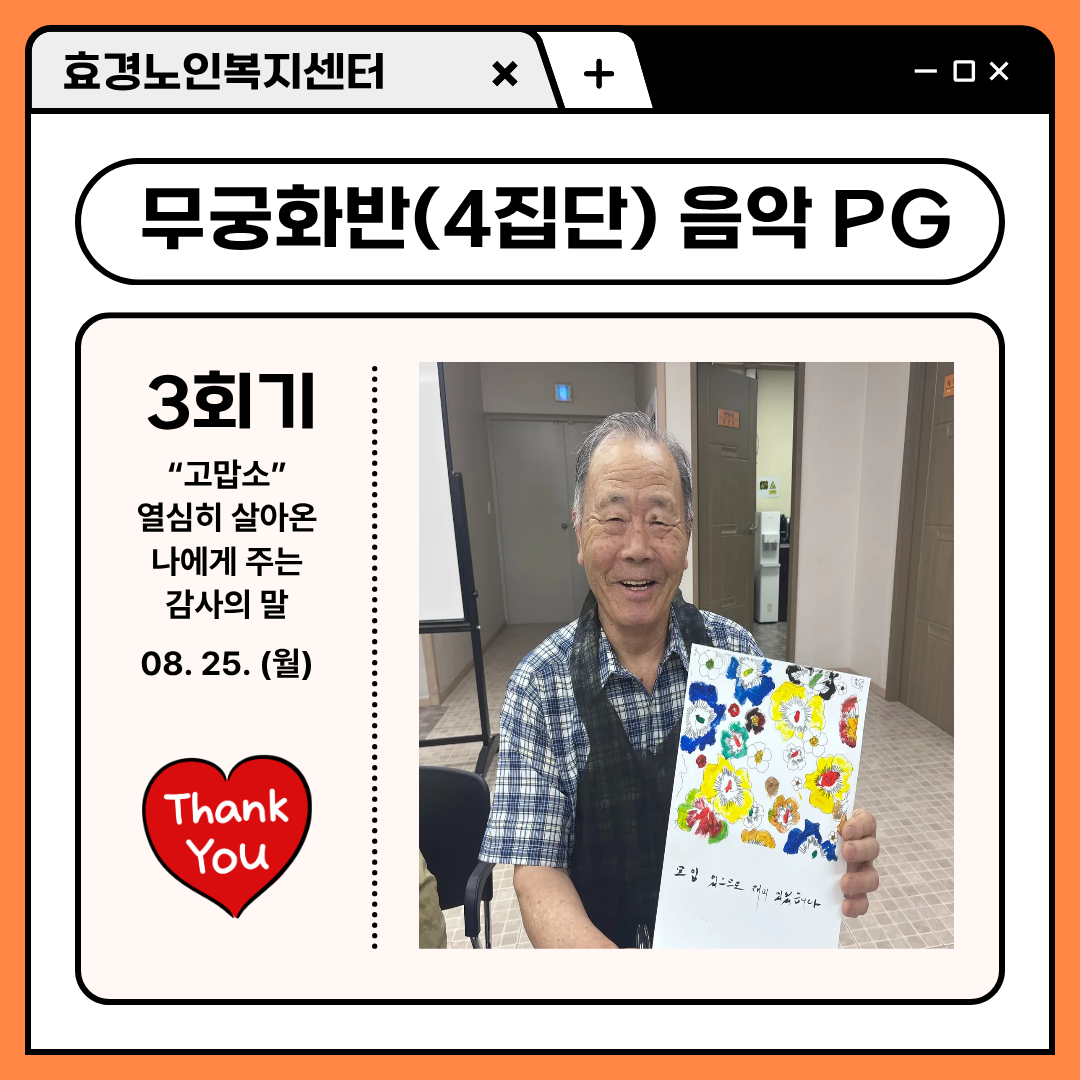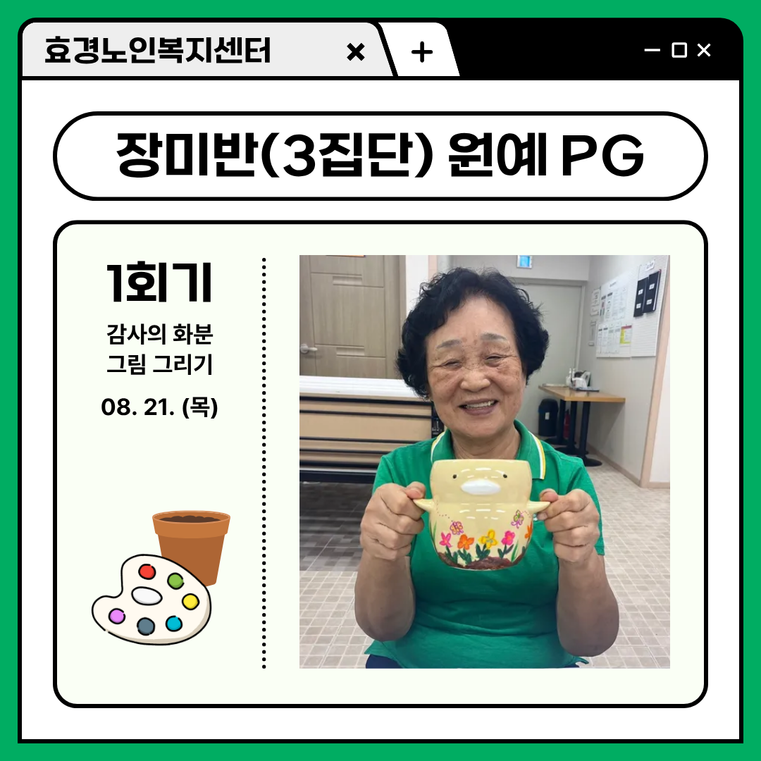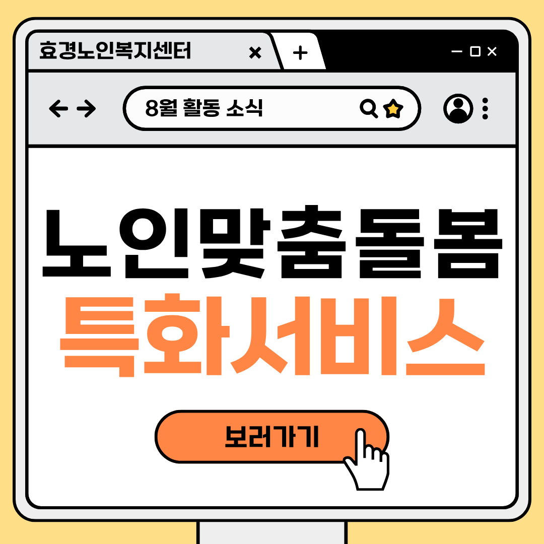[2025년]효경톡톡 8월호 노인맞춤돌봄특화서비스 작성자효경노인복지센터|작성시간25.09.02|조회수13 목록 댓글 0 글자크기 작게가 글자크기 크게가 다음검색 현재 게시글 추가 기능 열기 북마크 공유하기 신고 센터로 신고 댓글 댓글 0 댓글쓰기 답글쓰기 댓글 리스트