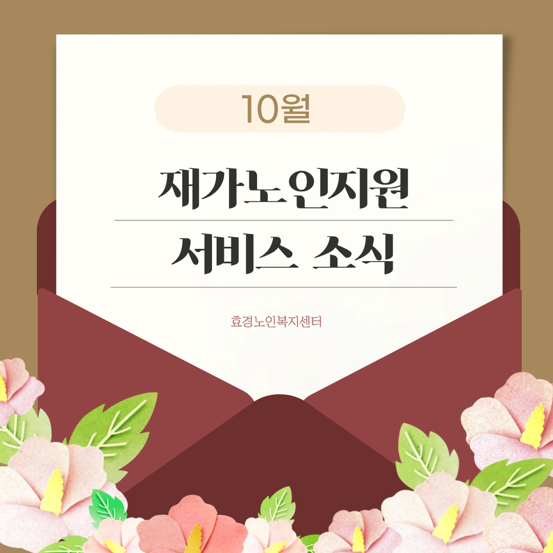 [2025년]효경톡톡 10월호 재가노인지원서비스 작성자효경노인복지센터|작성시간25.11.05|조회수22 목록 댓글 0 글자크기 작게가 글자크기 크게가 다음검색 현재 게시글 추가 기능 열기 북마크 공유하기 신고 센터로 신고 댓글 댓글 0 댓글쓰기 답글쓰기 댓글 리스트